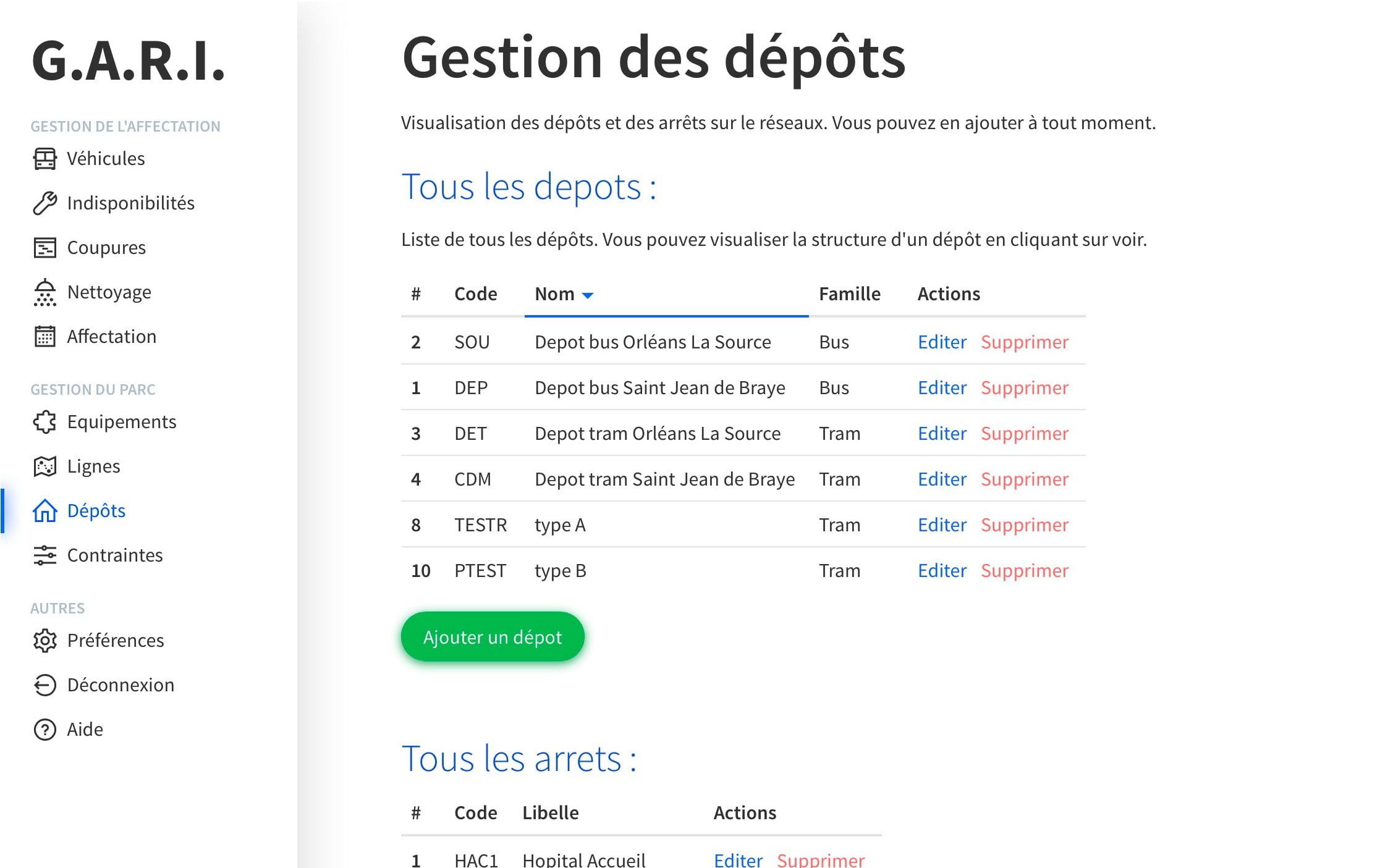 Avant l’affectation, vérifiez que les véhicules sont associés aux bons dépôts. Gardez GARI à jour à chaque mouvement entre dépôts.